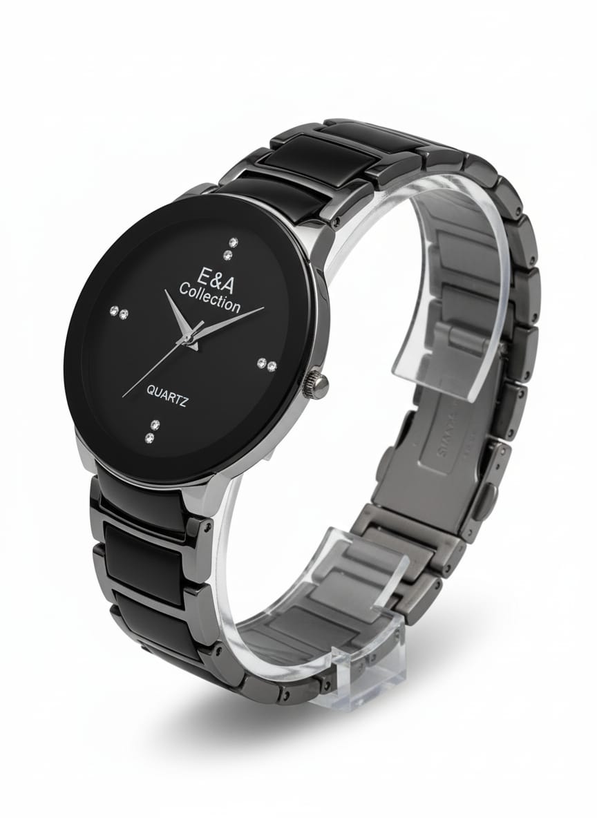 E&A Black Dial Stone Marker Gents Metal Watch – MF collections
